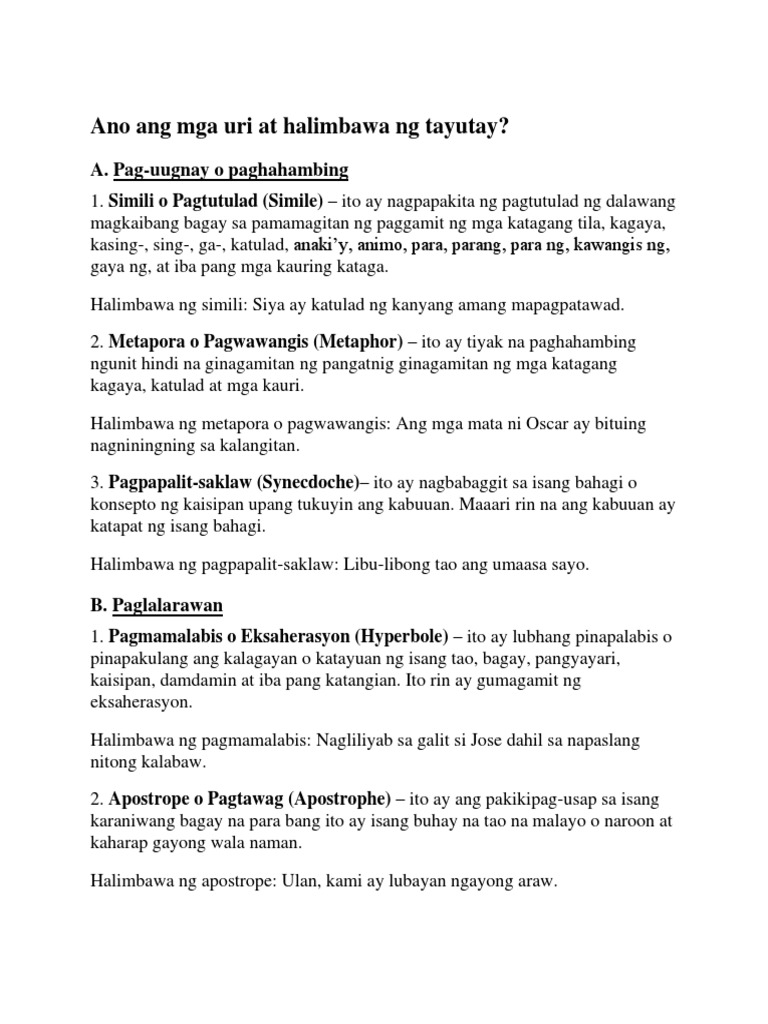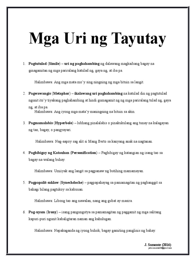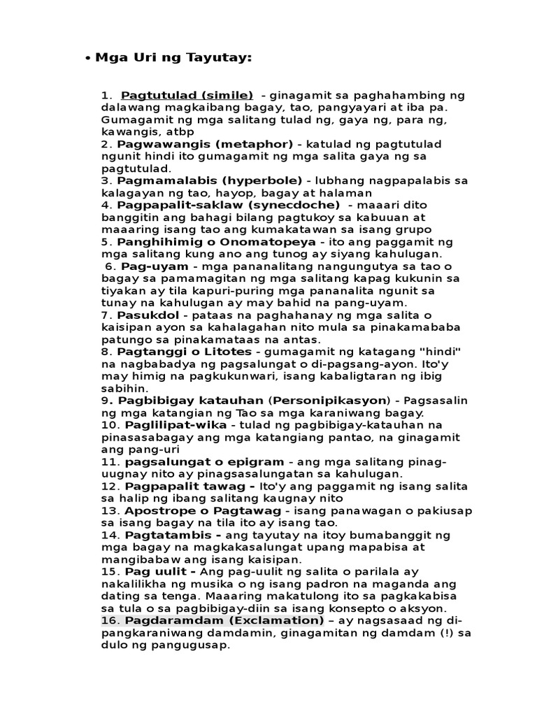 Halimbawa Ng Tayutay Mga Uri Ng Tayutay Atbp