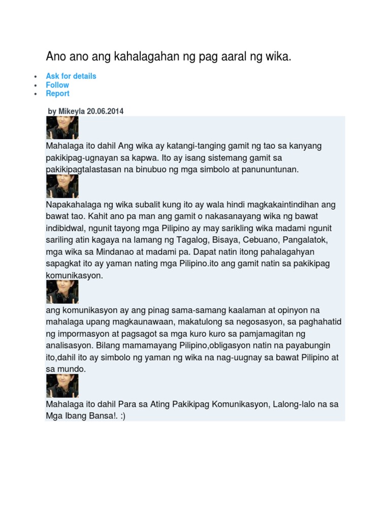 Ano Ano Ang Kahalagahan Ng Pag Aaral Ng Wika Docx