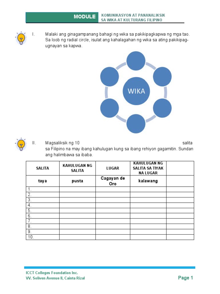 Komunikasyon At Kultura Sa Wika Filipino