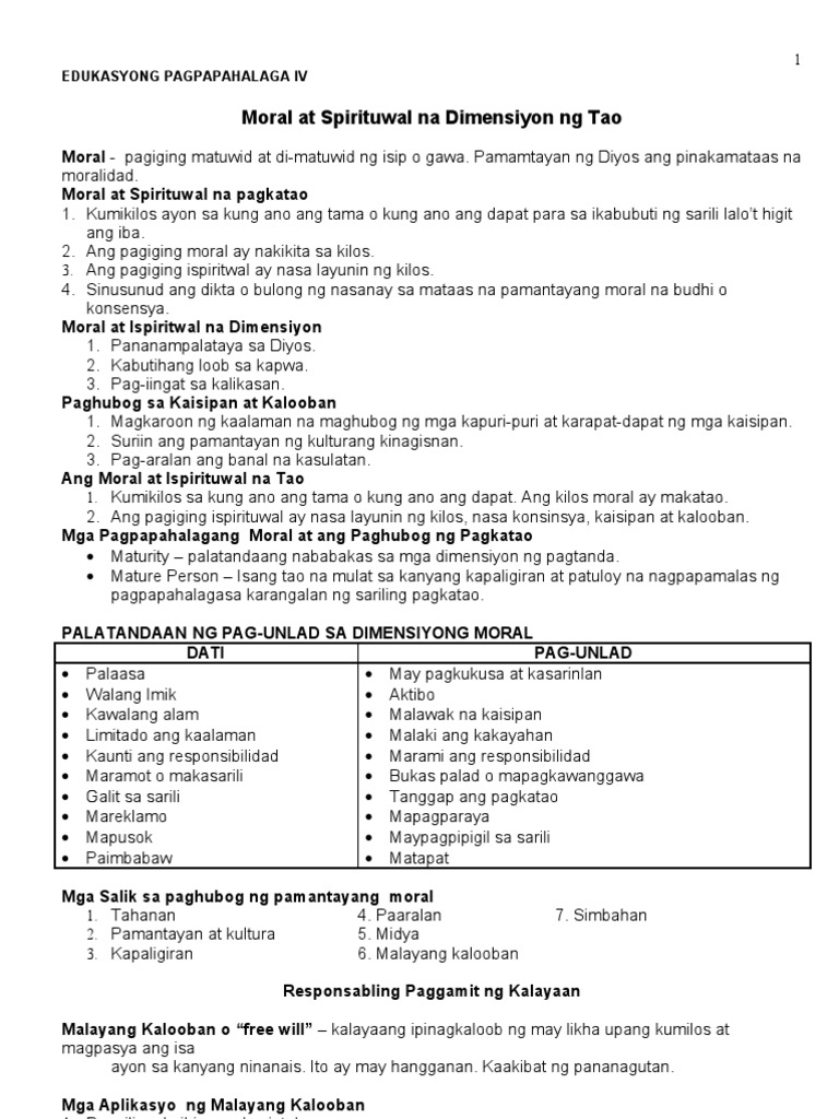 Moral At Spirituwal Na Dimensiyon Ng Tao