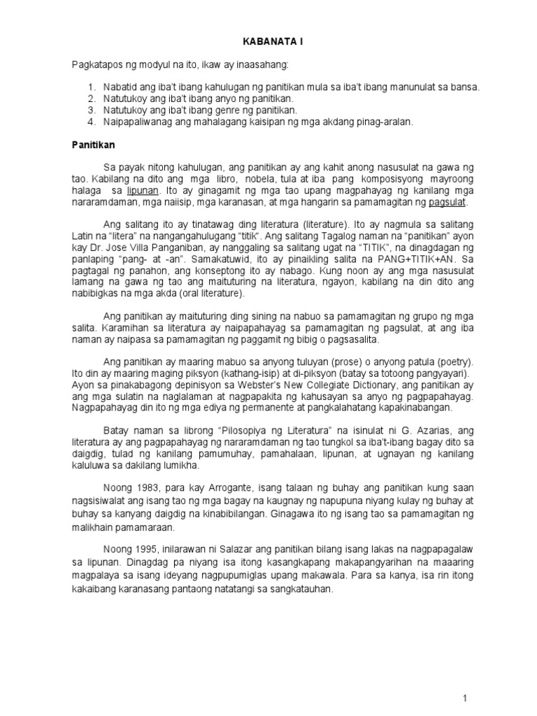 Panitikang Pilipino Part 1 Docsity