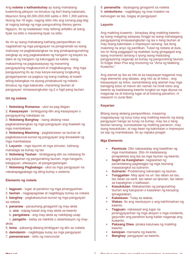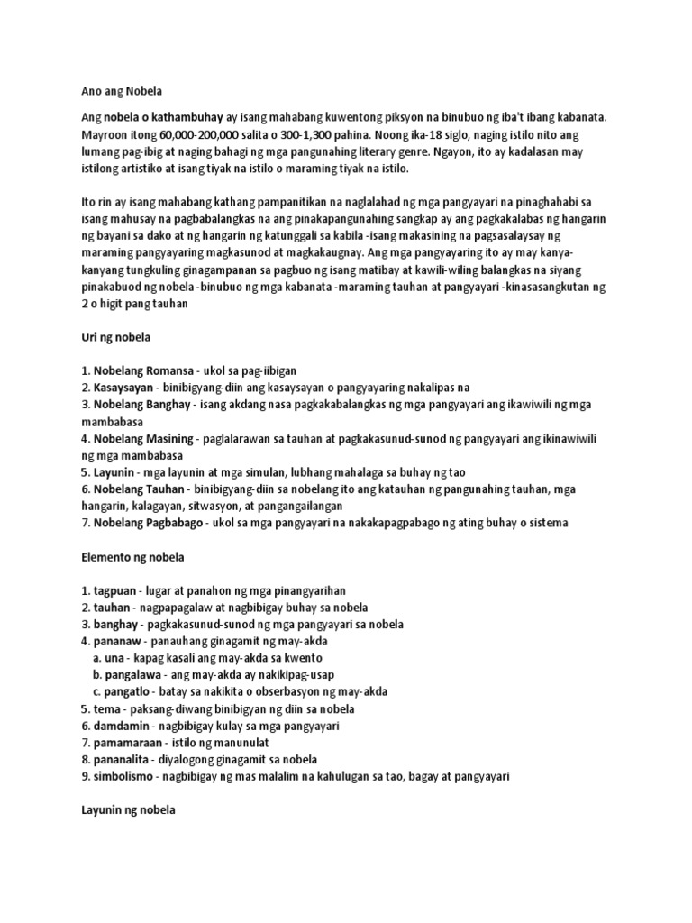 Kahulugan Uri At Elemento Ng Nobela