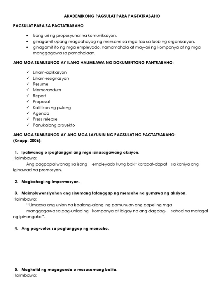 Akademikong Pagsulat Para Sa Pagtatrabaho