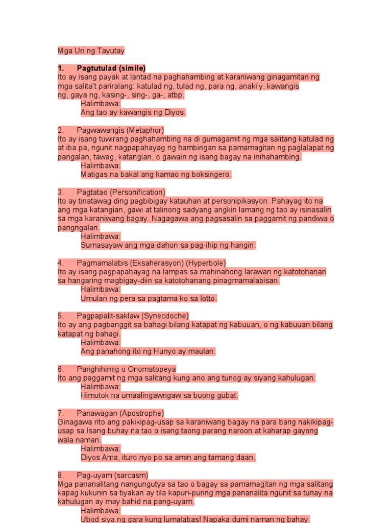 Tagalog Translation Of Figures Of Speech Youtube
