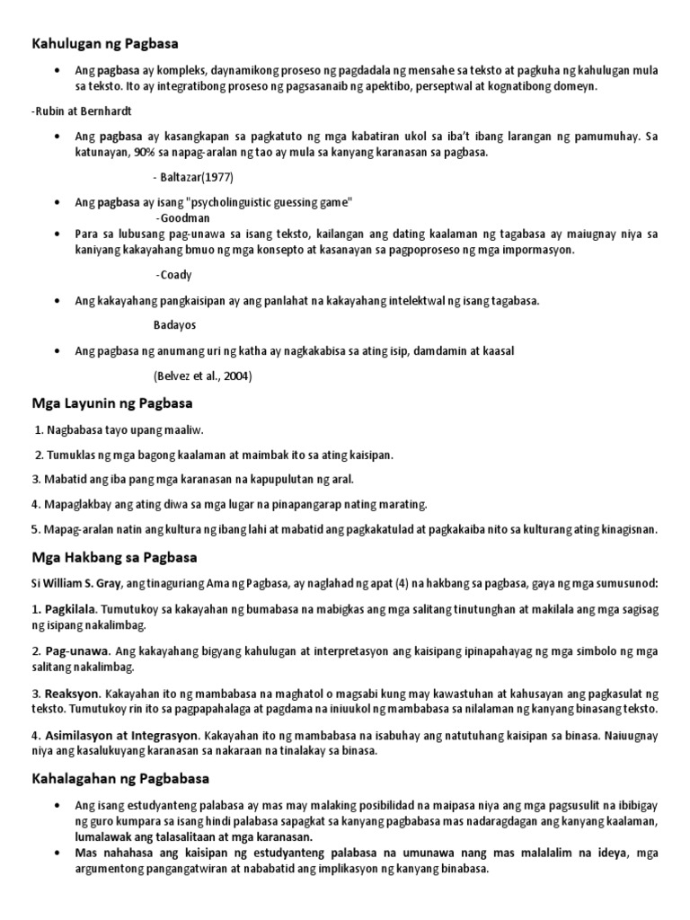 Kahulugan At Kahalagahan Ng Pagbasa