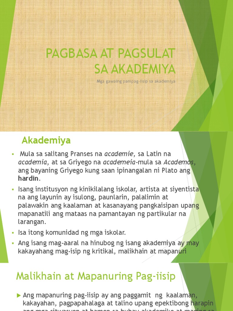 Mga Gawaing Pampag Iisip Sa Akademiya Pptx