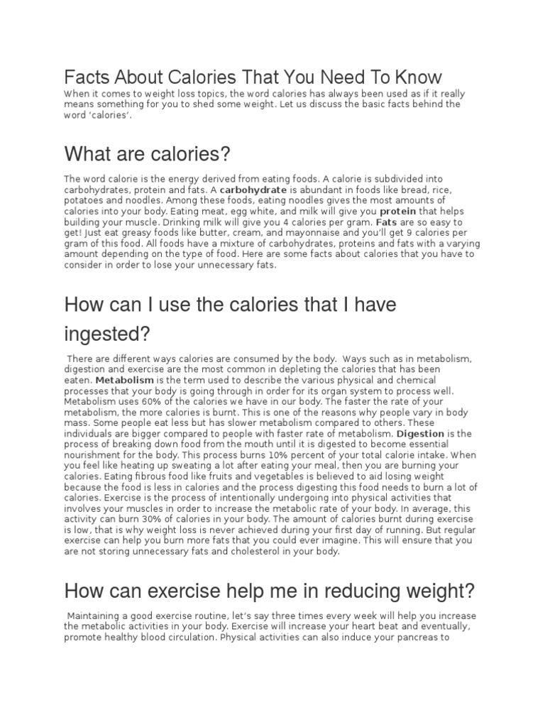 Facts About Calories That You Need To Know Physical Exercise Dieting
