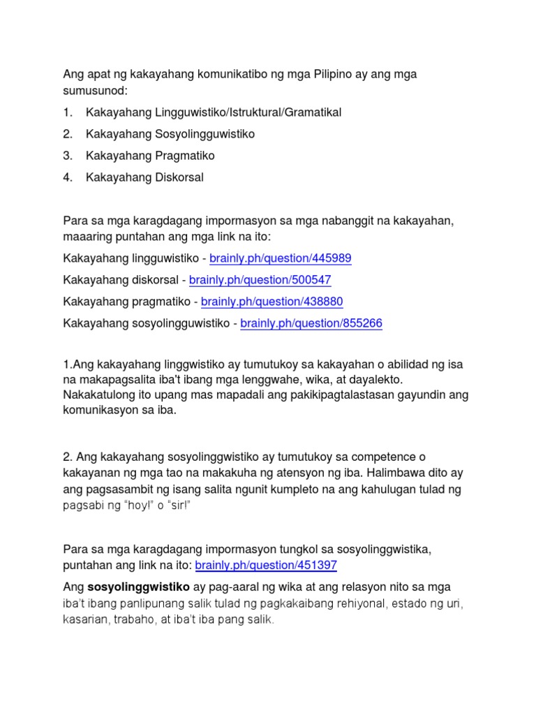 Halimbawa nito ay ang pagsasambit ng isang salita ngunit kumpleto na ang kahulugan tulad ng pagsabi ng hoy o sir 3. Tumutukoy ang kakayahang lingguwistiko sa abilidad ng isang tao na makabuo at makaunawa ng maayos at makabuluhang pangungusap. If you continue browsing the site you agree to the use of cookies on this website.