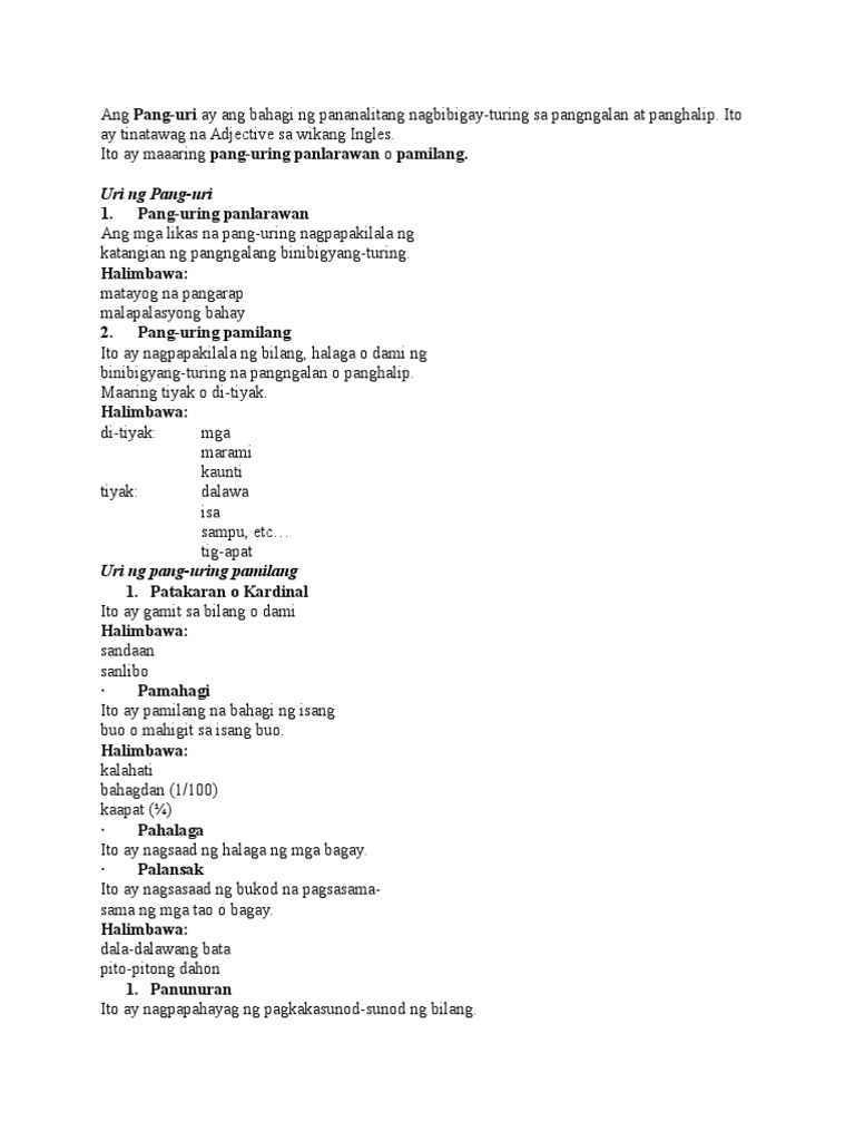 Pang Uri Halimbawa Ng Pang Uri Uri Ng Pang Uri Antas Atbp