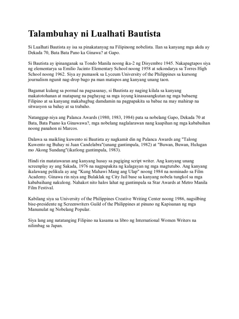 Talambuhay Ni Lualhati Bautista