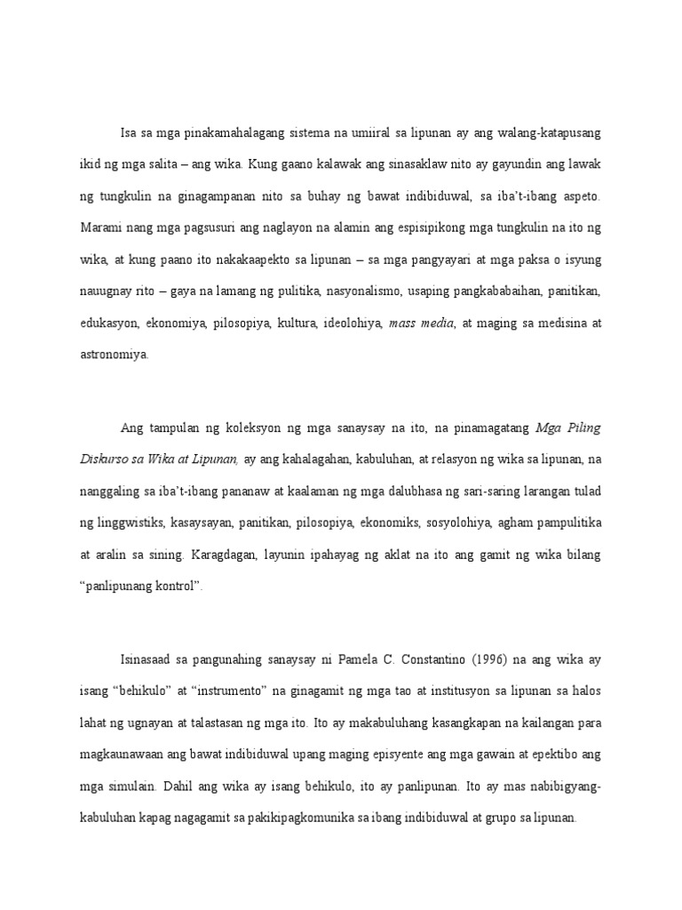 Mga Piling Diskurso Sa Wika At Lipunan