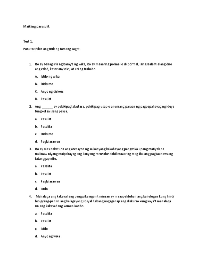 Antas Ng Filipino Sa Pakikipag Diskurso