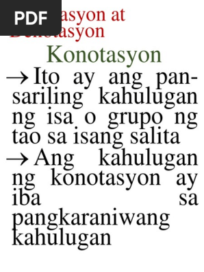 Denotasyon At Konotasyon Docx Denotasyon Literal O Totoong Kahulugan Ng Salita Kahulugan Ng Salita Na Matatagpuan Sa Diksyunaryo Bola Ng Kanyon Course Hero