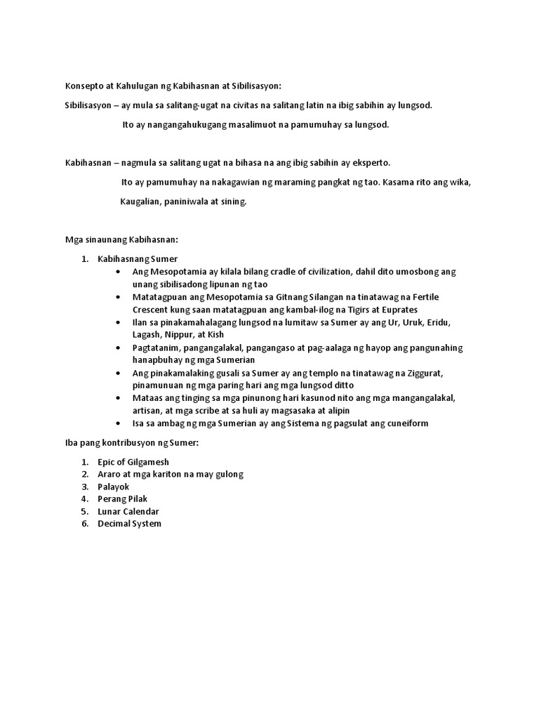 Konsepto At Kahulugan Ng Kabihasnan At Sibilisasyon