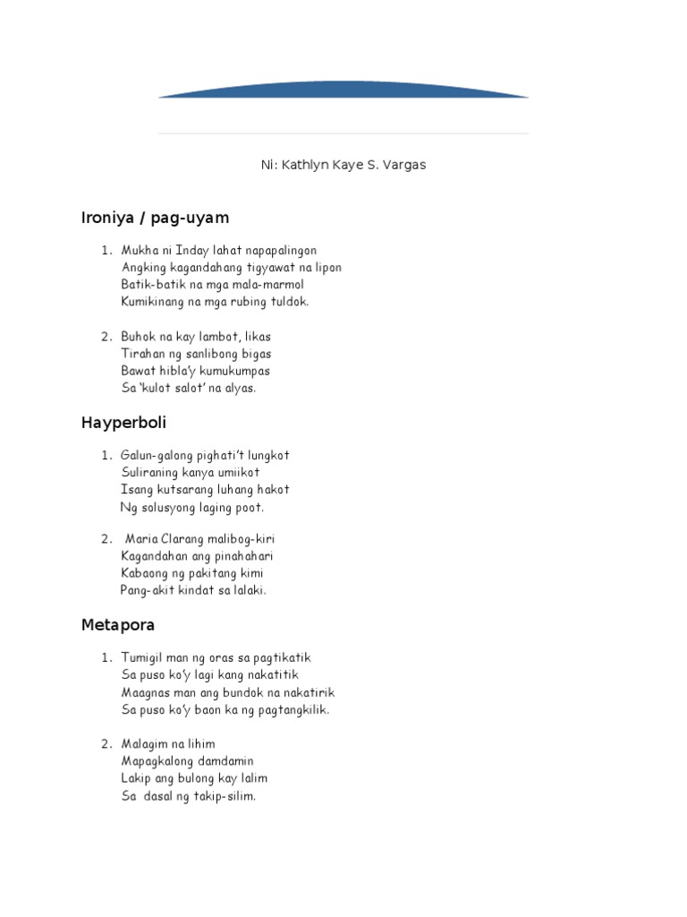 Halimbawa Ng Tula Na May Tayutay Mga Tagalog Na Tula Sa Pilipinas
