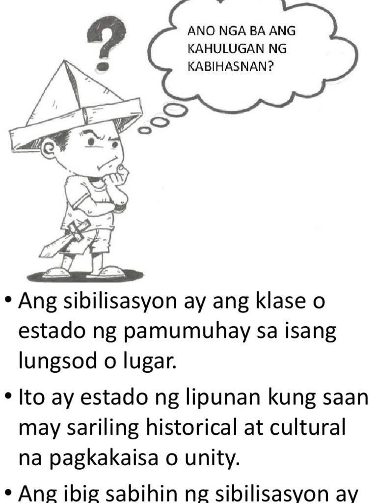 Ano ang kahulugan ng salitang KABIHASNAN Ang kabihasnan ay nagmula sa salitang- ugat na bihasa na ang ibig sabihin ay eksperto. Sa akda ring ito binigyang kahulugan niya ang kabihasnan na sinasabing. If i deal among four people three cards remain.