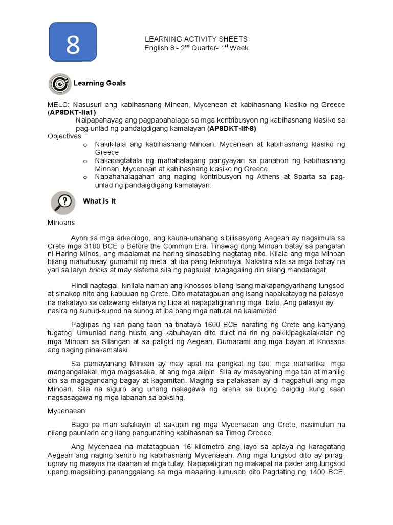 Ap 8 Q2 Modyul 1 Kabihasnang Minoan At Maycenaean Pdf