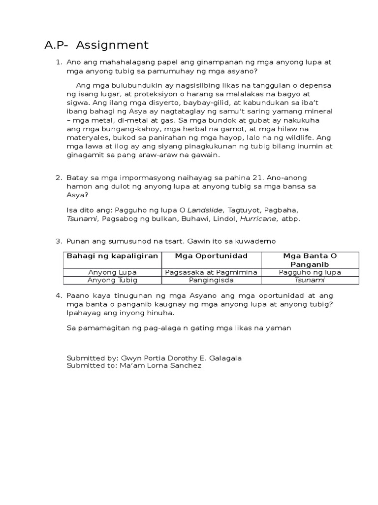 Asked by Wiki User. AP - Anyong Lupa at Tubig sa Mga lalawigan. Ano ang kahalagahan ng anyong lupa sa buhay ng mga tao.