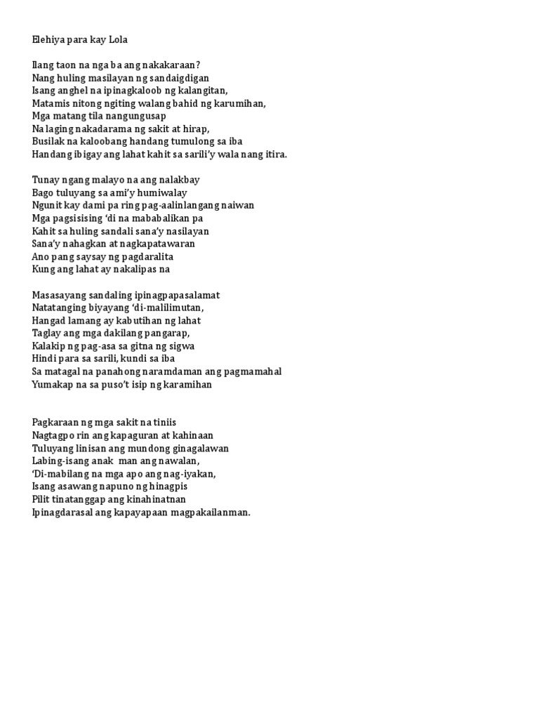 Halimbawa Ng Tulang Elehiya Maikling Kwentong