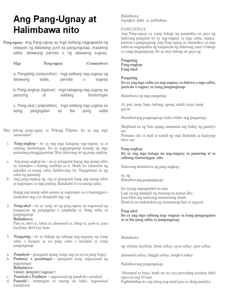 Mga Pang Ugnay At Mga Uri Nito