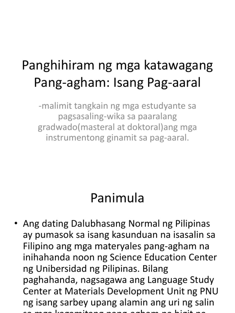 Panghihiram Ng Mga Katawagang Pang Agham Pagsasaling Wika