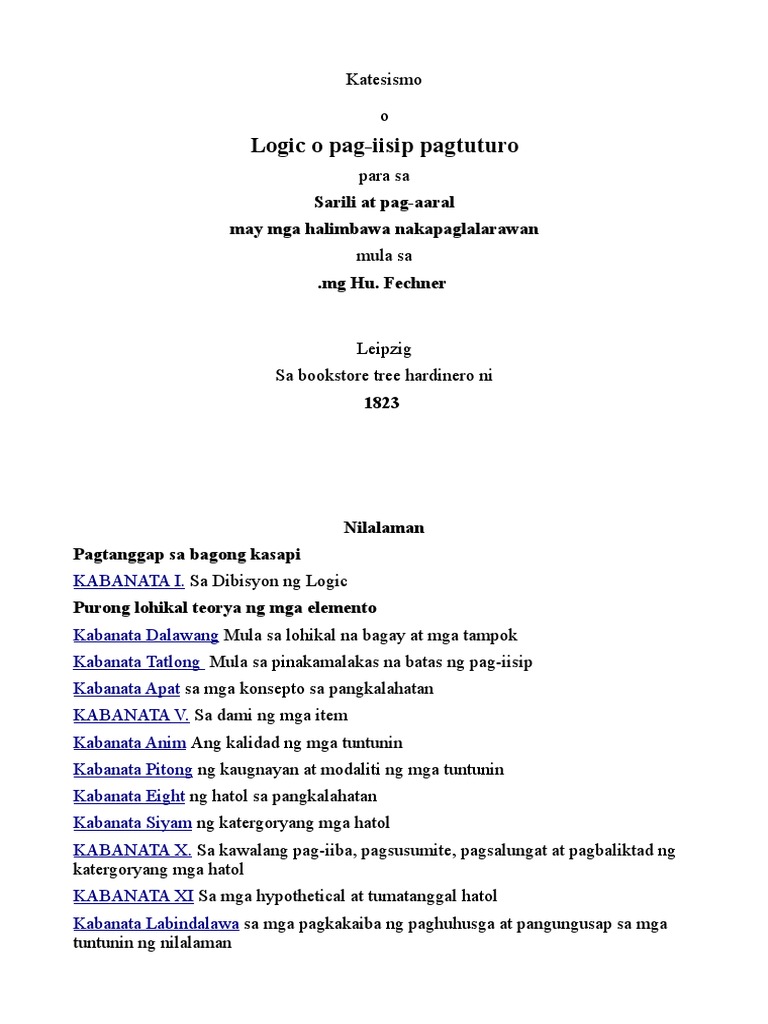 Katesismo Logic O Pag Iisip Pagtuturo Filipino Gustav Theodor Fechner