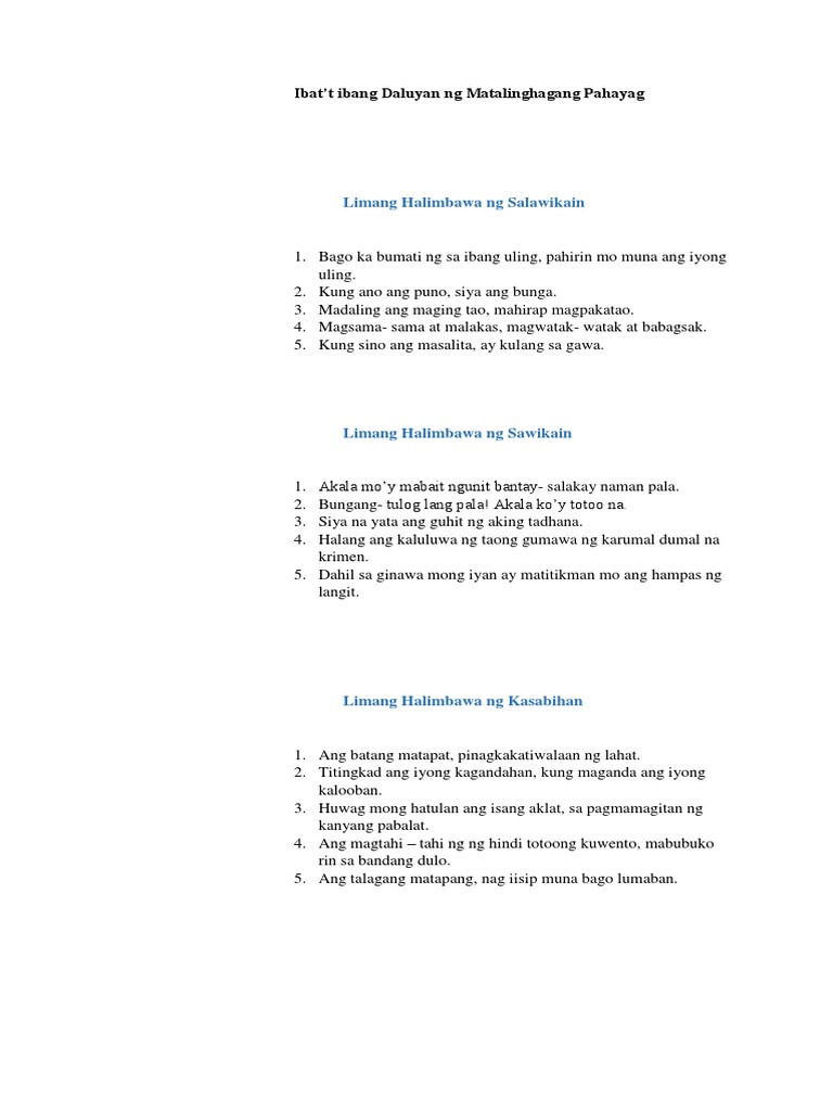 Sawikain 100 Halimbawa Ng Sawikain At Kahulugan
