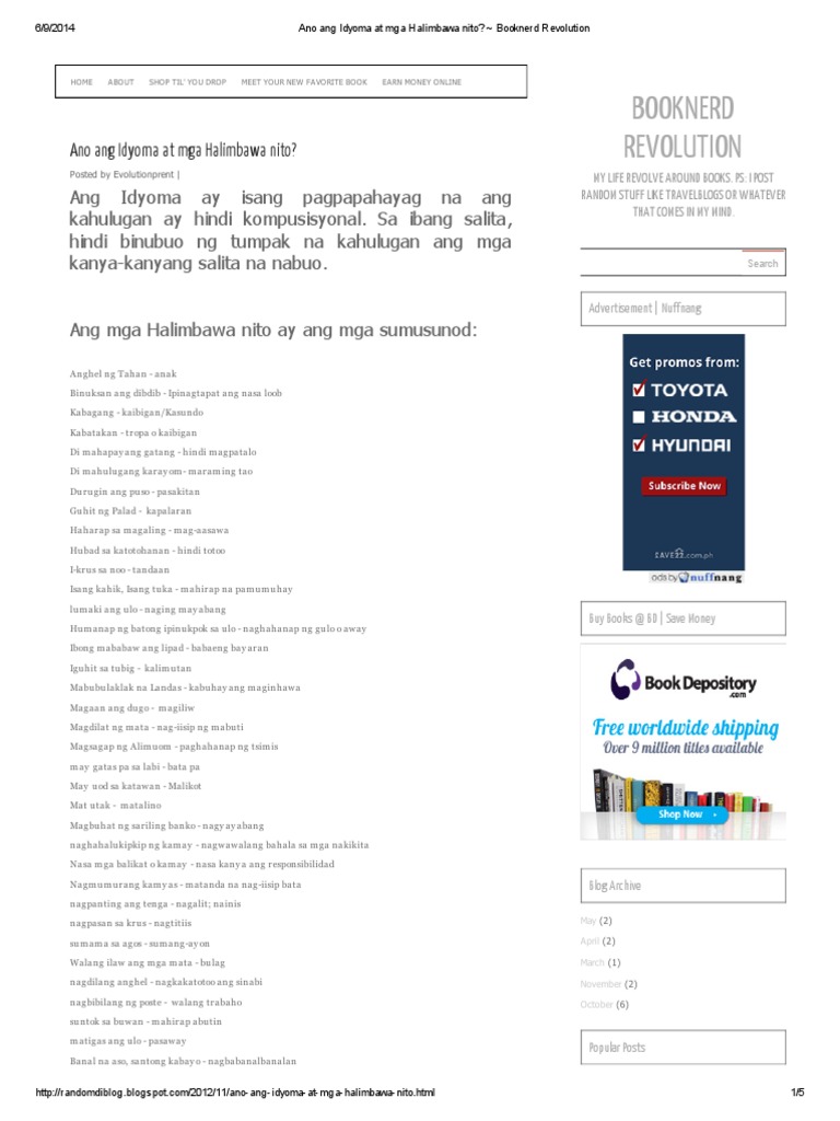 The na form of the linker is often dropped. Alamin ang ibat ibang halimbawa ng sawikain o idyoma na madalas gamitin sa Pilipinas. Basa ang papel Kahulugan.