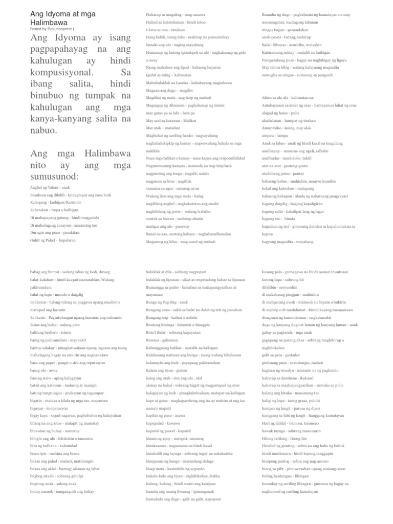 Mahina ang mga sumusunod na kahulugan ng sa pagsasagawa ng saliksik is. Ano ang ibig sabihin ng pag-aklas. Mag bigay ng sampung halimbawa ng idyoma.