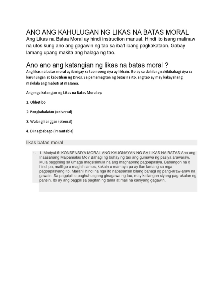 Ano Ang Kahulugan Ng Likas Na Batas Moral Brainly Ph