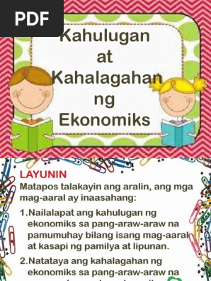 Aralin 1 - Kahulugan at Kahalagahan ng Ekonomiks sa. 1Nailalapat ang kahulugan ng ekonomiks sa pang-araw-araw na pamumuhay bilang isang mag-aaral at kasapi ng pamilya at lipunan. 2Natataya ang kahalagahan ng ekonomiks sa pang-araw-araw na pamumuhay ng bawat pamilya at ng lipunan.