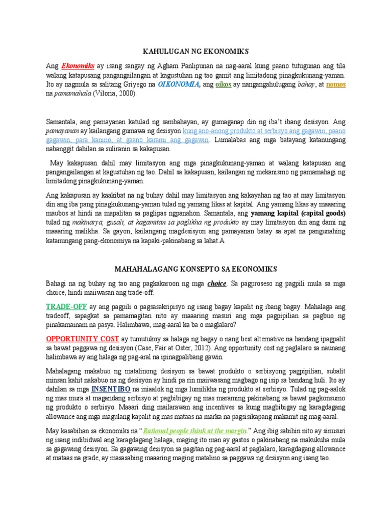 Kahulugan Ng Ekonomiks At Mga Konsepto Nito