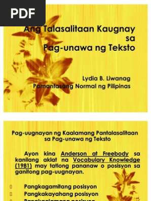 Ang Talasalitaan Kaugnay Sa Pagunawa Sa Teksto New