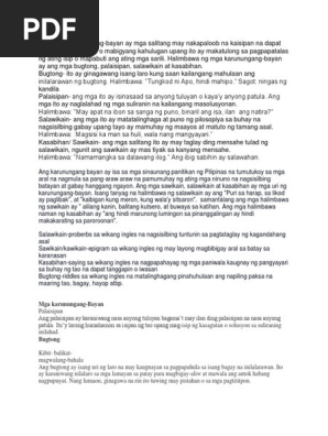 Ipanamalita ni talisayan na kasintahan niya si denang dumalaga. 239-2261 School Year 2020 2021 PANITIKAN. Kahulugan ng Salita A.