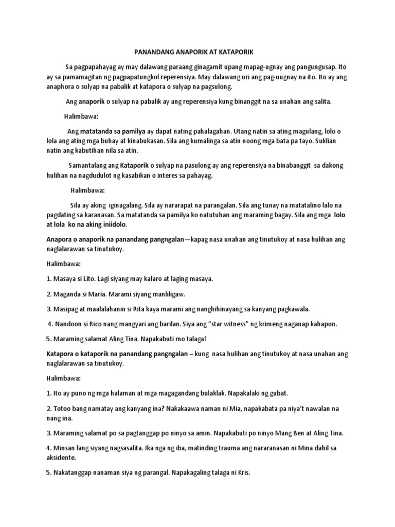 Halimbawa Ng Anapora Kahulugan At Mga Halimbawa