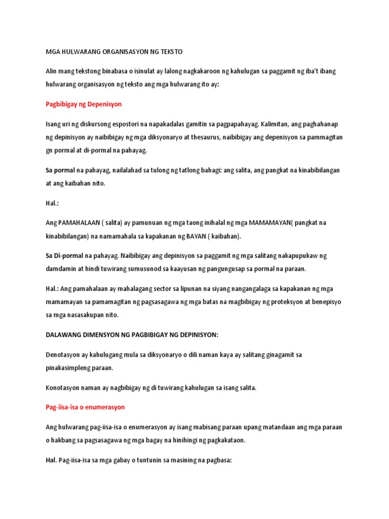Mga Hulwarang Organisasyon Ng Teksto 1 Docx