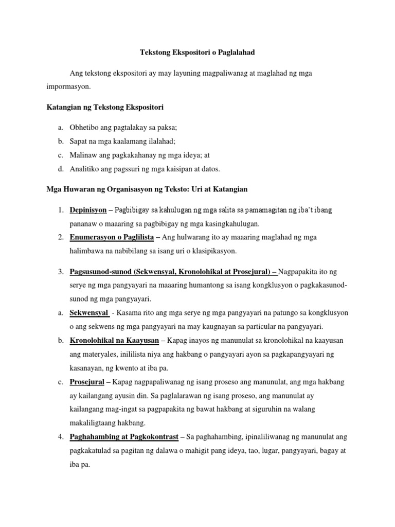 Doc Ang Hulwaran At Organisasyon Ng Tekstong Ekspositori Rogin Mae Cornelio Adriano Academia Edu