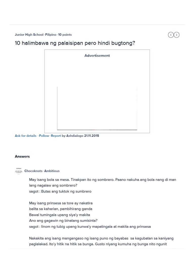 10 Halimbawa Ng Palaisipan Pero Hindi Bugtong Brainly Ph Pdf