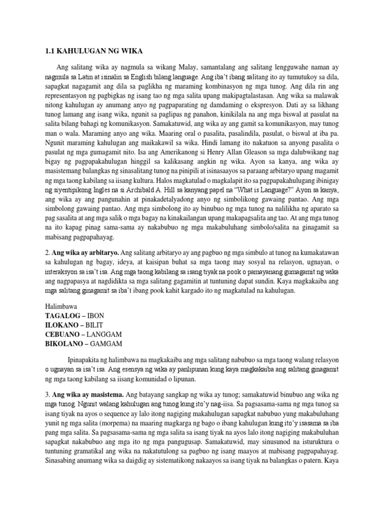 Doc Aralin 1 Pagkatuto Ng Wika Kahulugan Ng Wika At Kalikasan Ng Wika Haimar Saligan Academia Edu