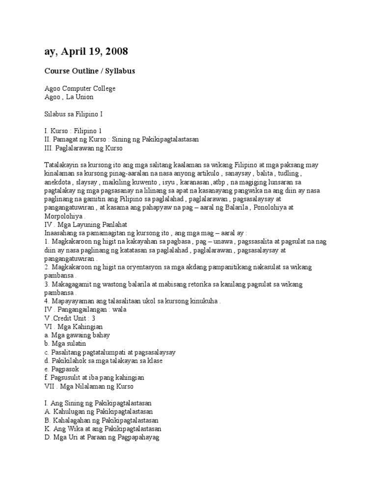 Doc Course Outline Fil Jay Tabarangao Cipcon Academia Edu
