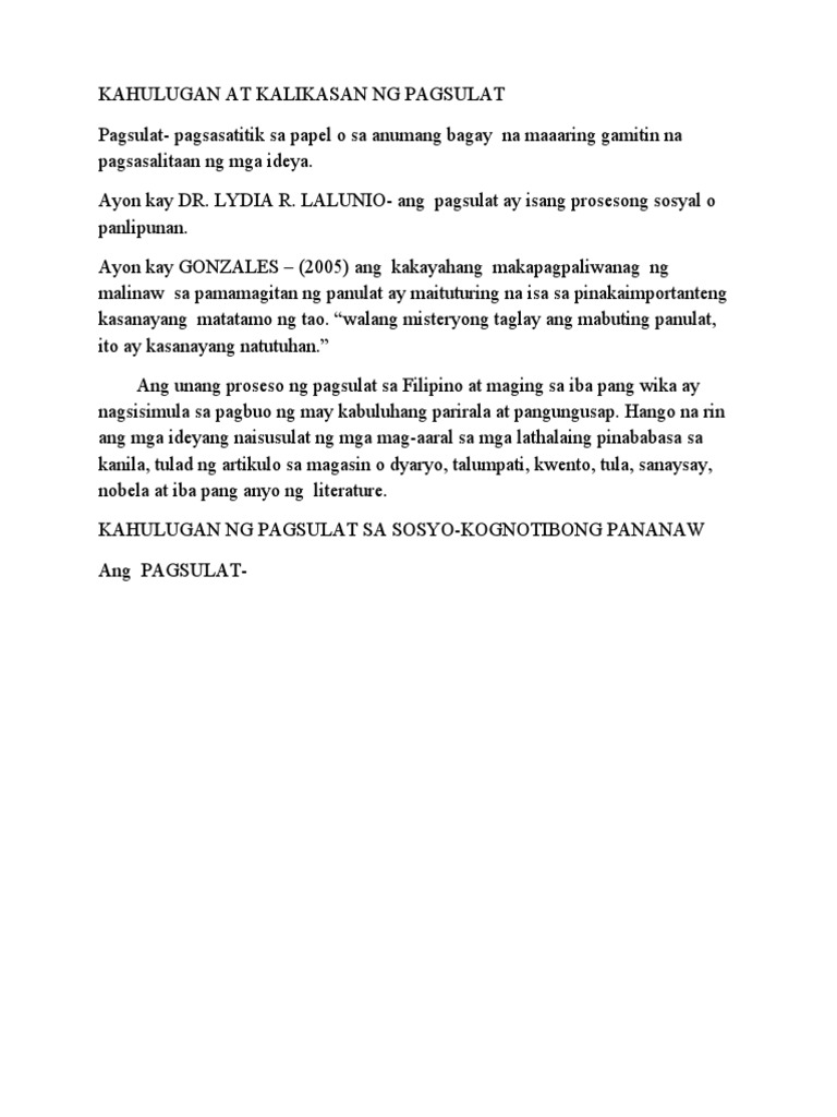 Pagsulat kahulugan at kalikasan. Tell us what you think abut this post by leaving your comments below. A Layunin b Gamit. Gaya ng paggawa ng balangkas ang pagbubuo ng abstrak bago ang mismong pagsulat ng pananaliksik ay makatutulong sa pagpaplano sa direksyon ng pananaliksik.