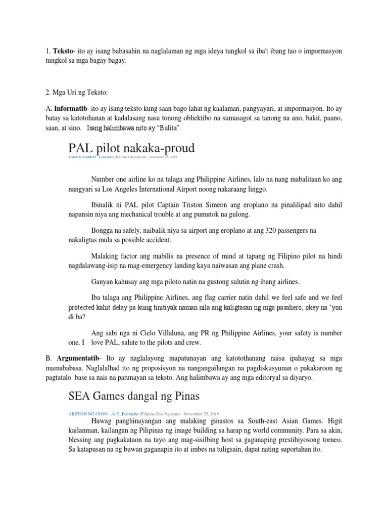 Halimbawa Ng Tekstong Persweysiv. Halimbawa ng tekstong impormatibo 2019. Halimbawa ng tekstong impormatibo 2019.